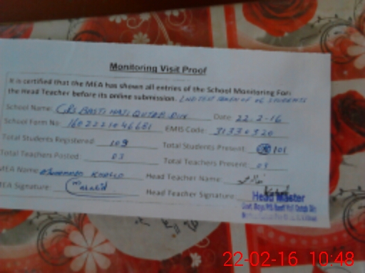 | EMIS Code: 31330320 | Name of School: GPS BASTI HAJI QUTAB DIN | |||