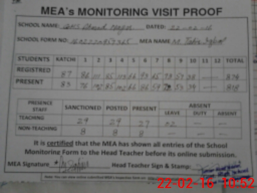 | Certified that this School was Inspected by the Undersigned MEA/DMO Today and the Information Stated Above is as Per Record. | |||||