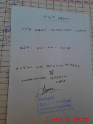 | EMIS Code: 38220116 | Name of School: GPS KHAN MUHAMMAD WALA | |||