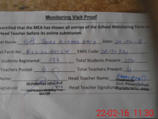 | Certified that this School was Inspected by the Undersigned MEA/DMO Today and the Information Stated Above is as Per Record. | |||||