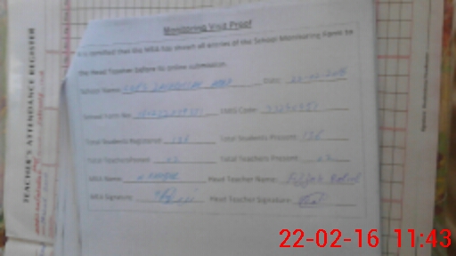 | Attendance Register | Head Teacher | MEA with School | Visit Proof |