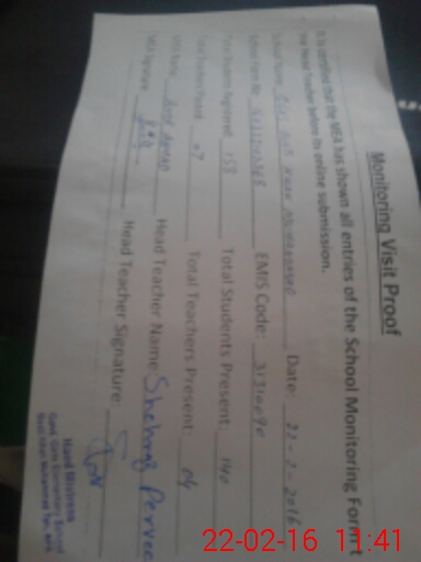 | Certified that this School was Inspected by the Undersigned MEA/DMO Today and the Information Stated Above is as Per Record. | |||||