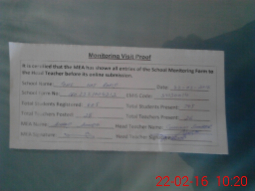 | Attendance Register | Head Teacher | MEA with School | Visit Proof |