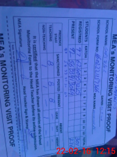 | Attendance Register | Head Teacher | MEA with School | Visit Proof |