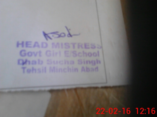 | Name: Sh**** Al**** Da**** Designation: (School Headmaster's/Headmistress's) EST Phone/Cell Number: 03**** |