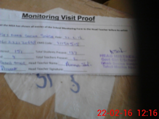 | Certified that this School was Inspected by the Undersigned MEA/DMO Today and the Information Stated Above is as Per Record. | |||||