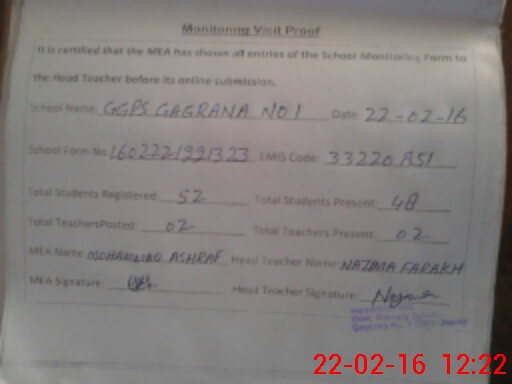| EMIS Code: 33220851 | Name of School: GGPS GAGRANA NO1 | |||