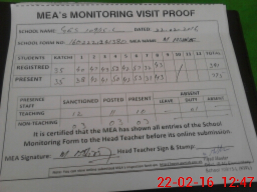 | Certified that this School was Inspected by the Undersigned MEA/DMO Today and the Information Stated Above is as Per Record. | |||||