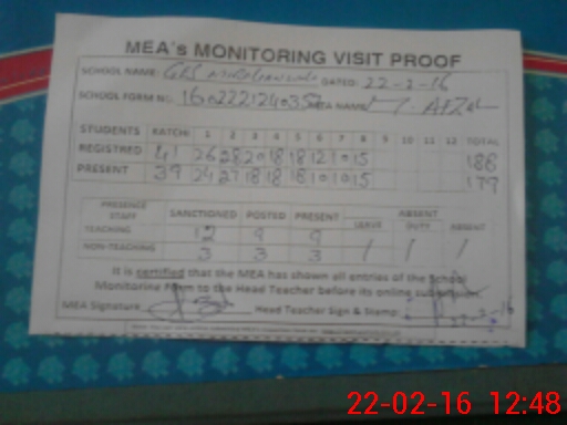 | Certified that this School was Inspected by the Undersigned MEA/DMO Today and the Information Stated Above is as Per Record. | |||||