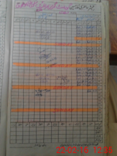 | CNIC | Full Name | Designation | R/C | Absence During Last Calender Month |