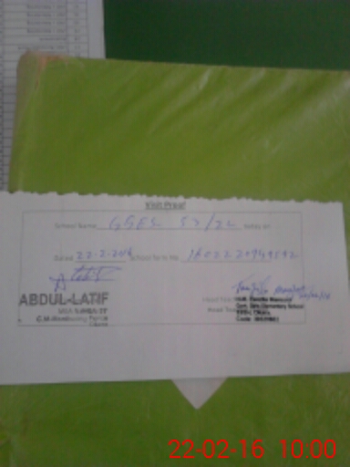 | School Visited by School Health & Nutrition Supervisor (No. of Visits) | 3 | Name1: | Abdul Sattar | Name2: | |