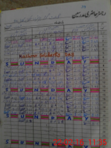 | CNIC | Full Name | Designation | R/C | Absence During Last Calender Month |