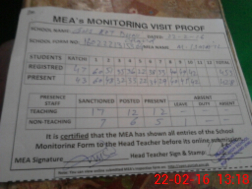 | Certified that this School was Inspected by the Undersigned MEA/DMO Today and the Information Stated Above is as Per Record. | |||||