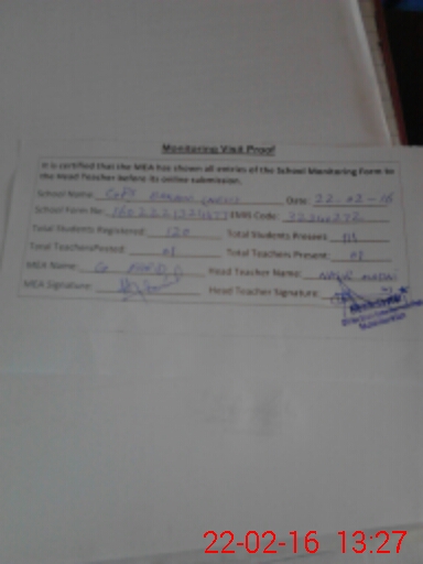 | Attendance Register | Head Teacher | MEA with School | Visit Proof |