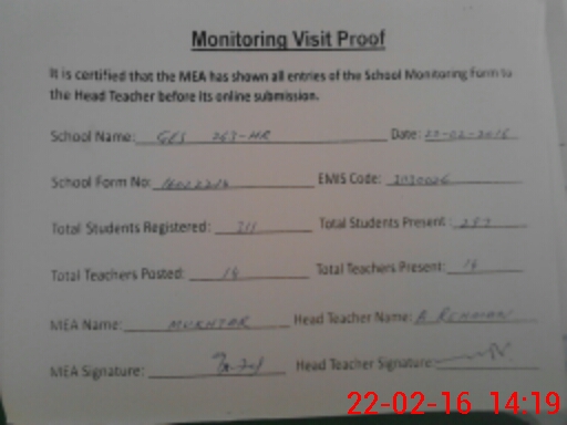 | EMIS Code: 31130026 | Name of School: GHS 263/HR | |||