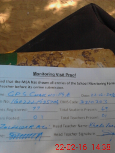 | EMIS Code: 31310303 | Name of School: GPS CHAK NO. 114/1-L | |||