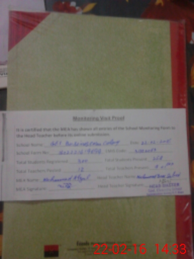 | Certified that this School was Inspected by the Undersigned MEA/DMO Today and the Information Stated Above is as Per Record. | |||||