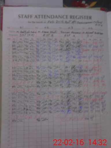 | CNIC | Full Name | Designation | R/C | Absence During Last Calender Month |