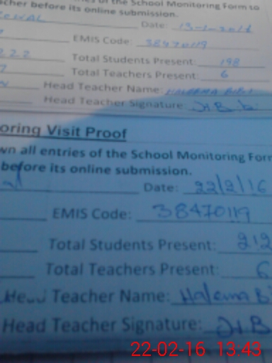 | Name: Fa**** BA**** Designation: (School Headmaster's/Headmistress's) EST Phone/Cell Number: 03**** |