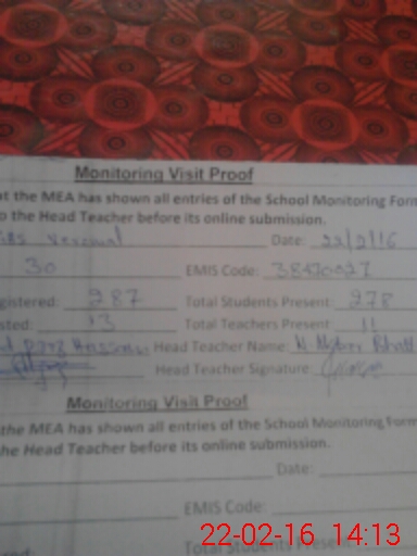 | Attendance Register | Head Teacher | MEA with School | Visit Proof |