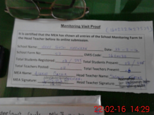 | Certified that this School was Inspected by the Undersigned MEA/DMO Today and the Information Stated Above is as Per Record. | |||||
