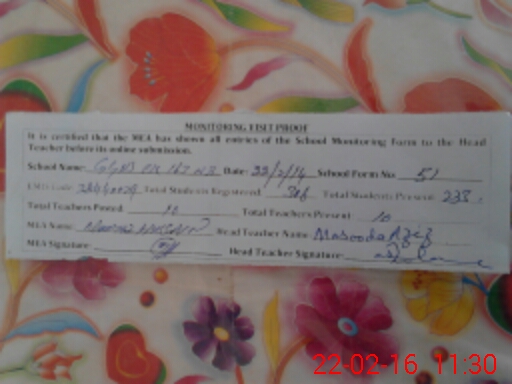 | Certified that this School was Inspected by the Undersigned MEA/DMO Today and the Information Stated Above is as Per Record. | |||||