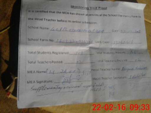 | Attendance Register | Head Teacher | MEA with School | Visit Proof |