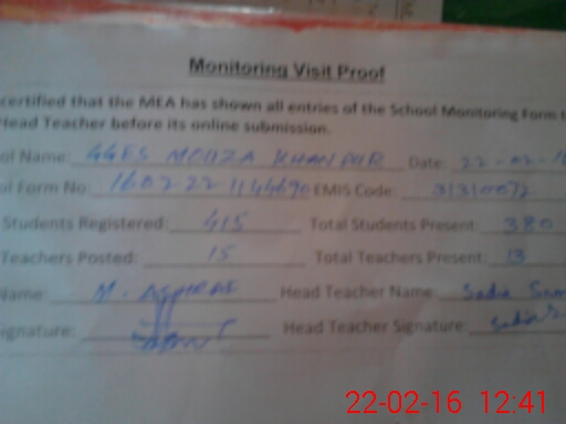 | Certified that this School was Inspected by the Undersigned MEA/DMO Today and the Information Stated Above is as Per Record. | |||||