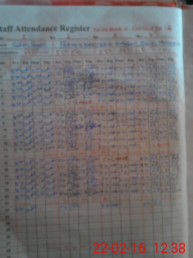 | CNIC | Full Name | Designation | R/C | Absence During Last Calender Month |