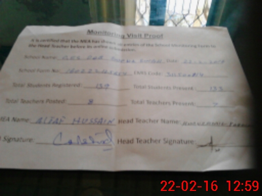 | Certified that this School was Inspected by the Undersigned MEA/DMO Today and the Information Stated Above is as Per Record. | |||||
