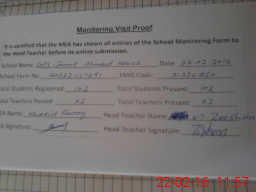 | EMIS Code: 31320850 | Name of School: GPS JAMAL MUHAMMAD NAICH | |||