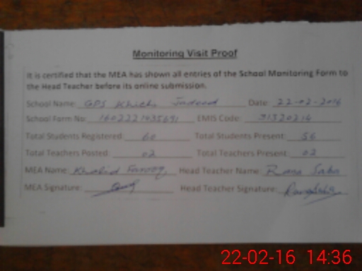 | EMIS Code: 31320214 | Name of School: GPS KHACHI JADEED | |||