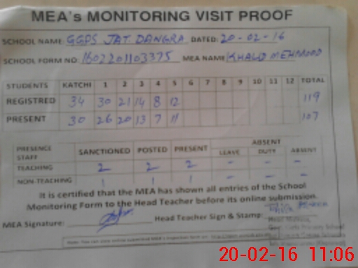 | Attendance Register | Head Teacher | MEA with School | Visit Proof |