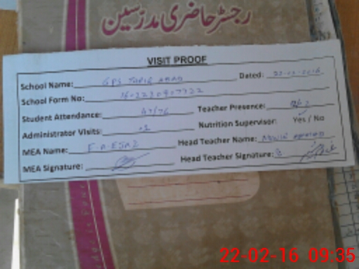 | Attendance Register | Head Teacher | MEA with School | Visit Proof |