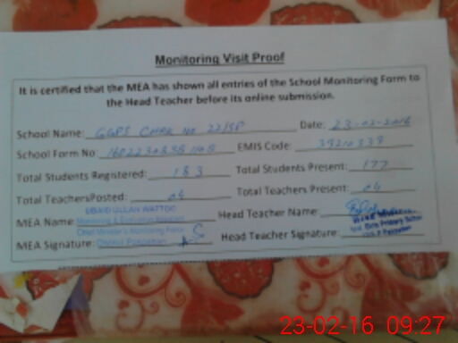 | EMIS Code: 39210339 | Name of School: GGPS 22 SP | |||