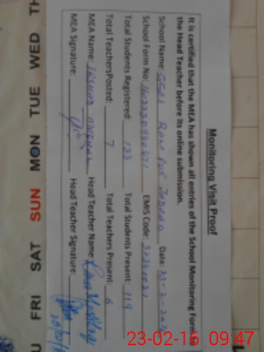 | Attendance Register | Head Teacher | MEA with School | Visit Proof |