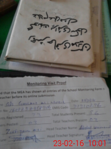 | EMIS Code: 31310276 | Name of School: GPS GHULAM ALI MARIL | |||