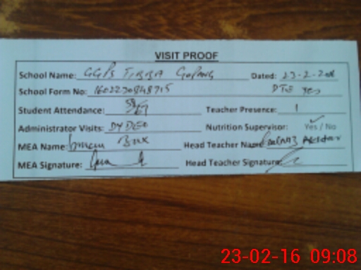 | Attendance Register | Head Teacher | MEA with School | Visit Proof |
