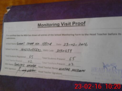 | Attendance Register | Head Teacher | MEA with School | Visit Proof |