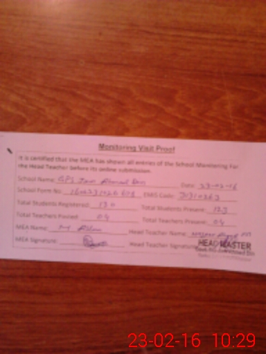 | EMIS Code: 31310263 | Name of School: GPS JAM AHMAD DIN | |||
