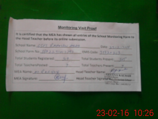 | Certified that this School was Inspected by the Undersigned MEA/DMO Today and the Information Stated Above is as Per Record. | |||||