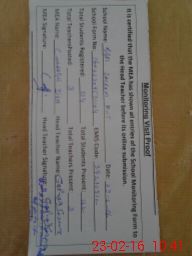 | Certified that this School was Inspected by the Undersigned MEA/DMO Today and the Information Stated Above is as Per Record. | |||||