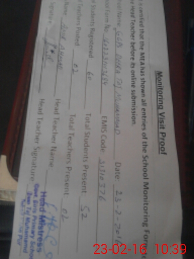 | EMIS Code: 31310376 | Name of School: GGPS DERA TAJ MUHAMMAD | |||