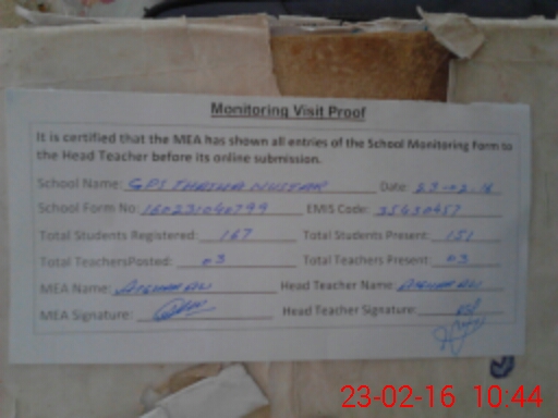 | EMIS Code: 35430457 | Name of School: GPS THATTA NUSTER | |||