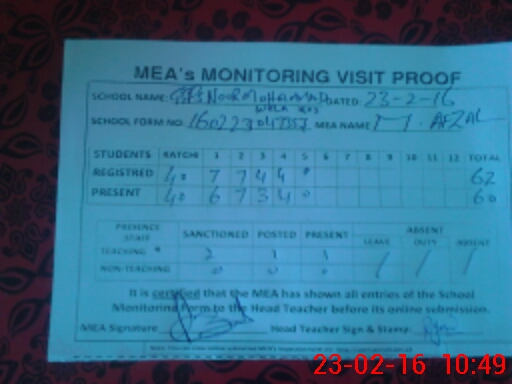 | Certified that this School was Inspected by the Undersigned MEA/DMO Today and the Information Stated Above is as Per Record. | |||||