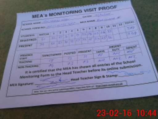 | Attendance Register | Head Teacher | MEA with School | Visit Proof |