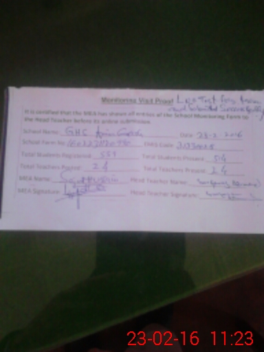 | Certified that this School was Inspected by the Undersigned MEA/DMO Today and the Information Stated Above is as Per Record. | |||||