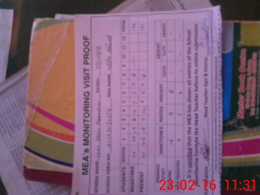 | Attendance Register | Head Teacher | MEA with School | Visit Proof |