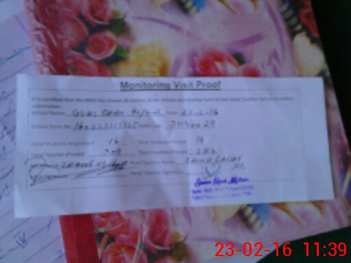 | Certified that this School was Inspected by the Undersigned MEA/DMO Today and the Information Stated Above is as Per Record. | |||||