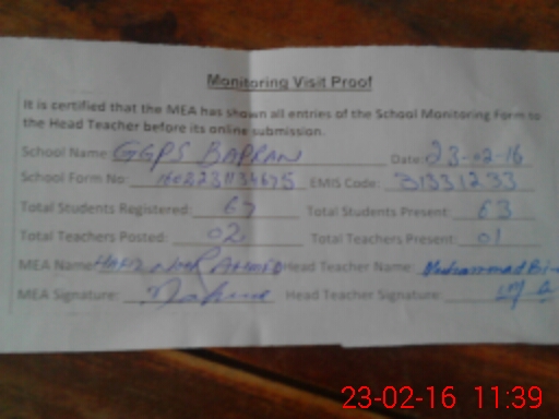 | Certified that this School was Inspected by the Undersigned MEA/DMO Today and the Information Stated Above is as Per Record. | |||||
